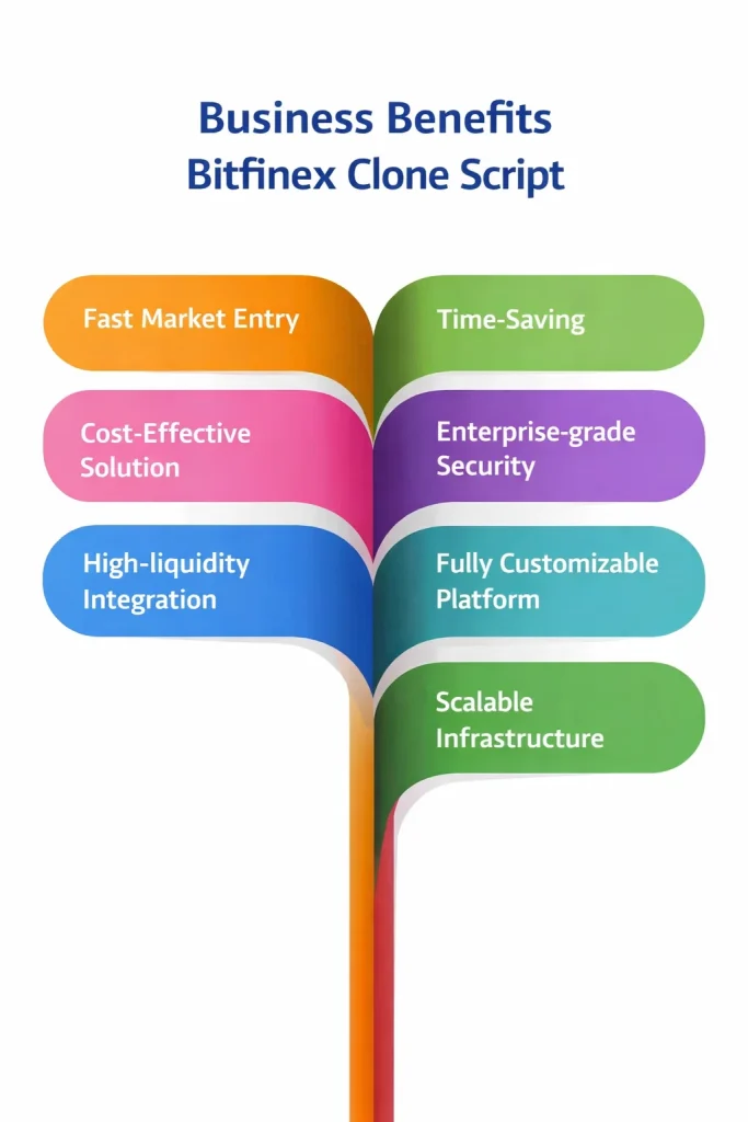Developing a premium Bitfinex clone software accelerates your market entry while minimizing risks and costs. These are the unparalleled advantages that position when choosing a reliable Bitfinex clone app development service to get sustainable growth and competitive dominance.