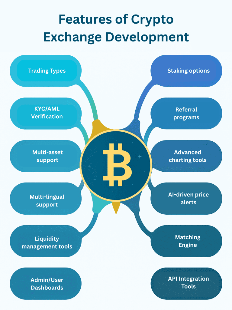 Core Features are really efficient for crypto exchange platform development. On a basic scale, you’ll need a powerful trading engine for order matching, secure crypto wallets, and robust payment gateway integration. Besides, you will also need security feature incorporations into your platform for safeguarding user assets. Security protocols like 2FA, multi-sign wallets, and end-to-end encryption are all necessary. Without these features, your exchange won’t gain user trust and market credibility.